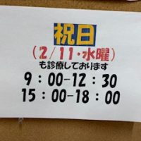 2/11(水・祝)も18時まで診療しております。