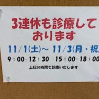 11/1(土)2(日)3(月・祝)も18時まで診療しております。