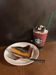 アサイーベリーフラペチーノとパンプキンバスクチーズケーキ🎂